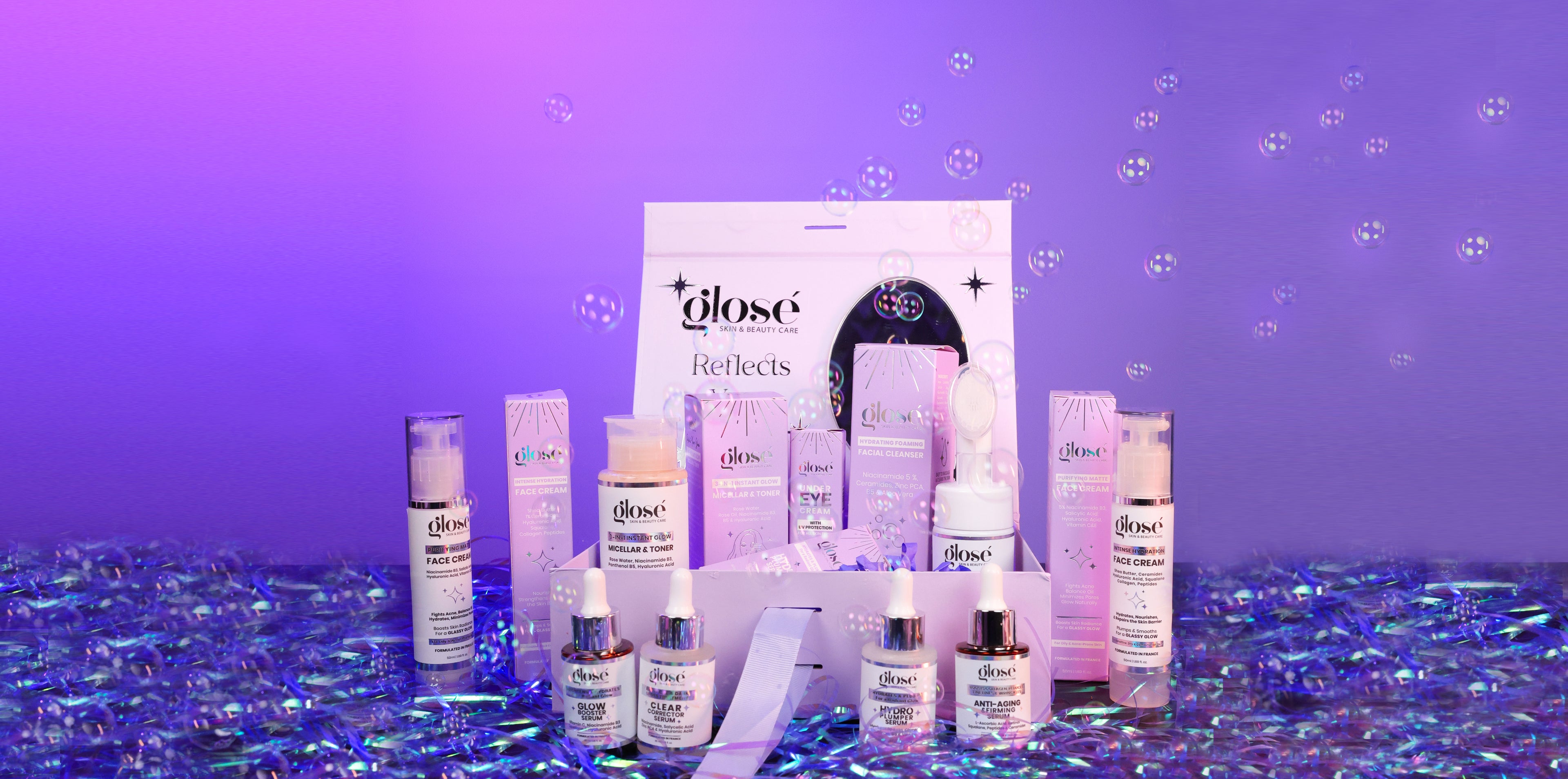 At Glosé, we believe beauty starts within. Inspired by gloss and glow, we celebrate your natural radiance. Our skincare and cosmetics blend self-love, innovation, and skin science using dermatologist-tested, skin-safe ingredients that nourish, protect, and empower your glow.